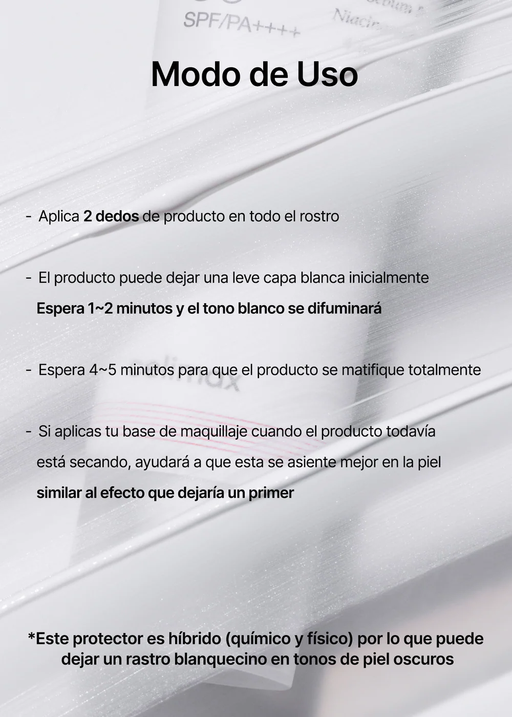 Infused with Niacinamide and sebum-control ingredients, it helps regulate oil production while keeping your skin smooth and shine-free throughout the day. Its lightweight texture absorbs quickly, leaving a natural matte finish with no white cast.