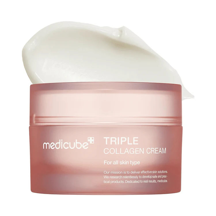 Medicube Triple Collagen Cream is a high-performance Korean moisturizer designed to boost skin elasticity, deeply hydrate, and improve overall skin firmness.